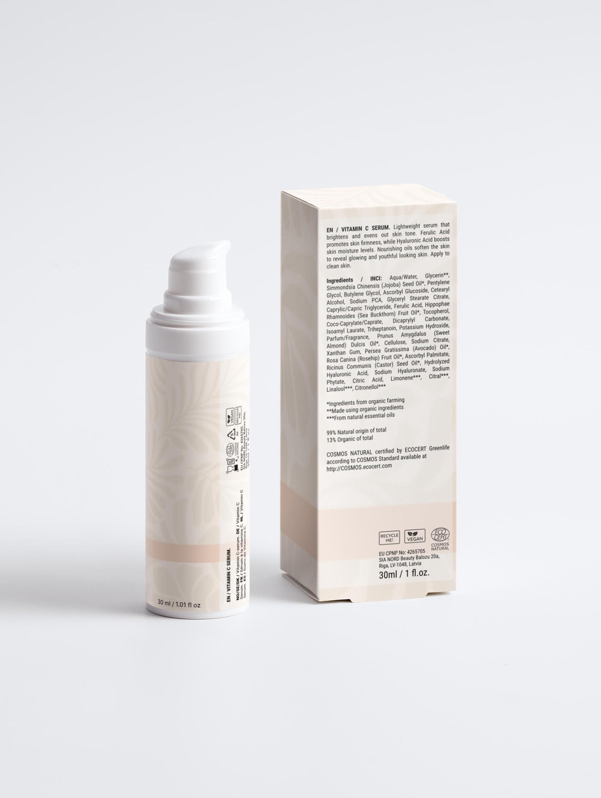 Lightweight serum that brightens and evens out skin tone. Ferulic Acid promotes skin firmness, while Hyaluronic Acid boosts skin moisture levels. Nourishing oils soften the skin to reveal glowing and youthful looking skin. Apply to clean skin.